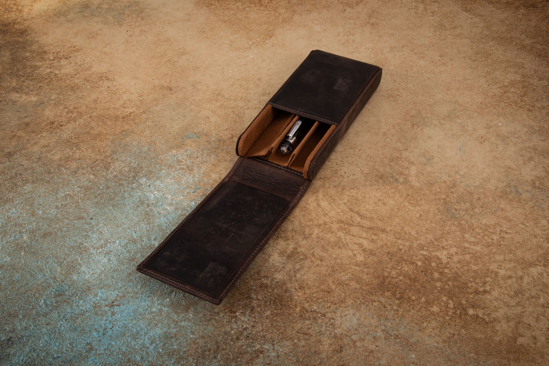El yapımı %100 doğal deri kullanılarak üretilen bu kalemlikler, zarif tasarımı ve işlevselliği bir araya getiriyor. İç kısmı ahşap ile güçlendirilmiş olan kalemlikler, darbelere karşı üstün bir dayanıklılık sunarak uzun ömürlü bir kullanım sağlıyor.